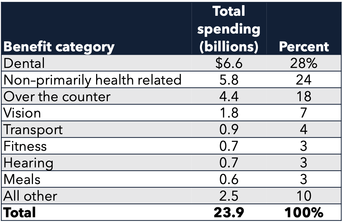 The non-medical benefits and lower premiums are what make MA plans attractive for patients. In 2023, MA plans spent $24 billion on non-Medicare services—things like dental coverage, transportation, and fitness memberships.